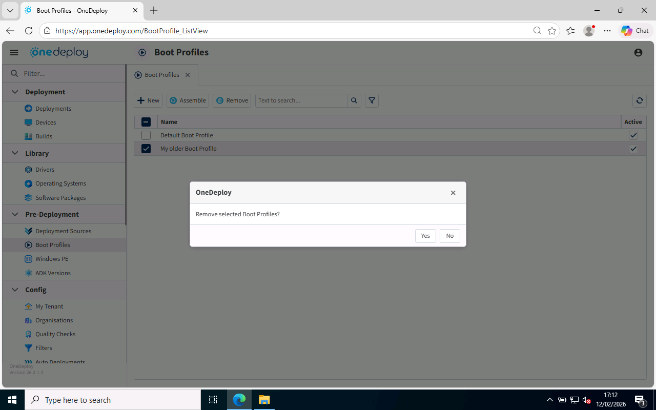Important: You should always keep at least one Boot Profile available, as OneDeploy requires a Boot Profile in order to perform deployments.