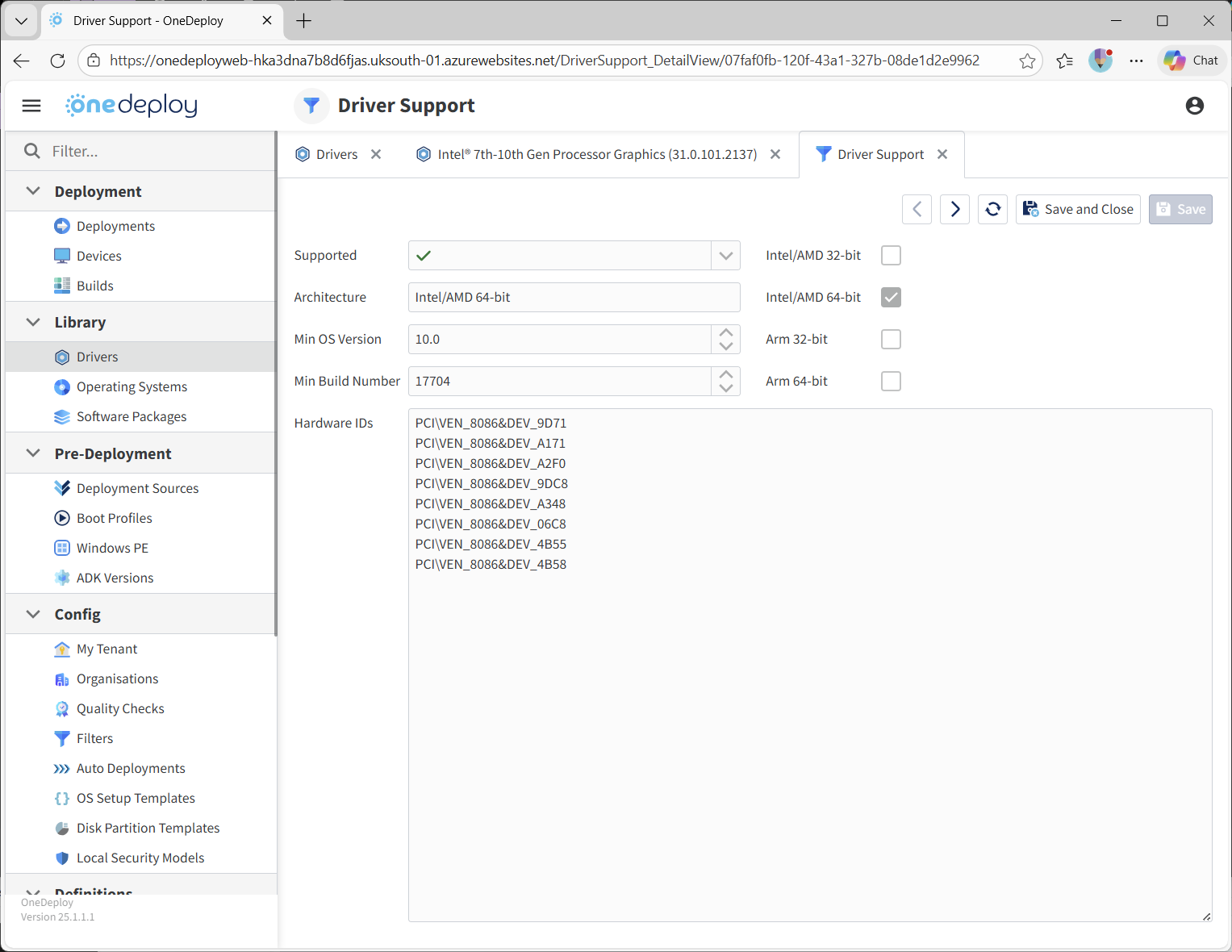 This allows OneDeploy to avoid attempting to apply a Driver to incompatible hardware.