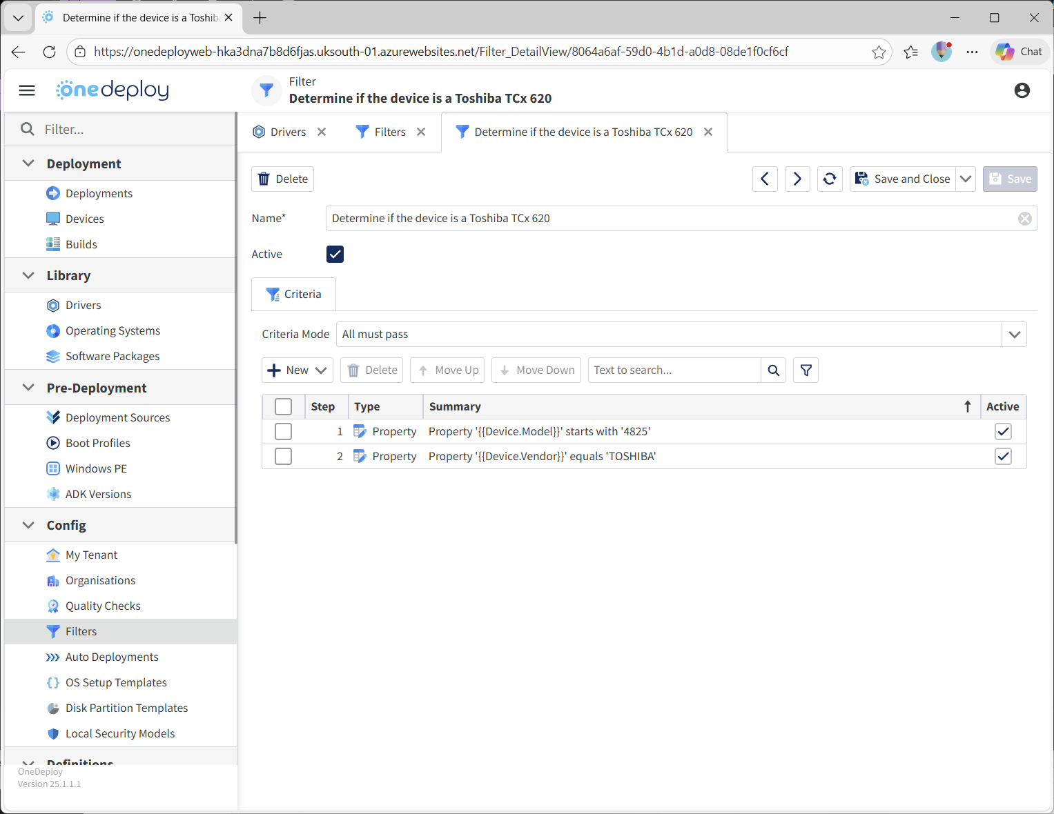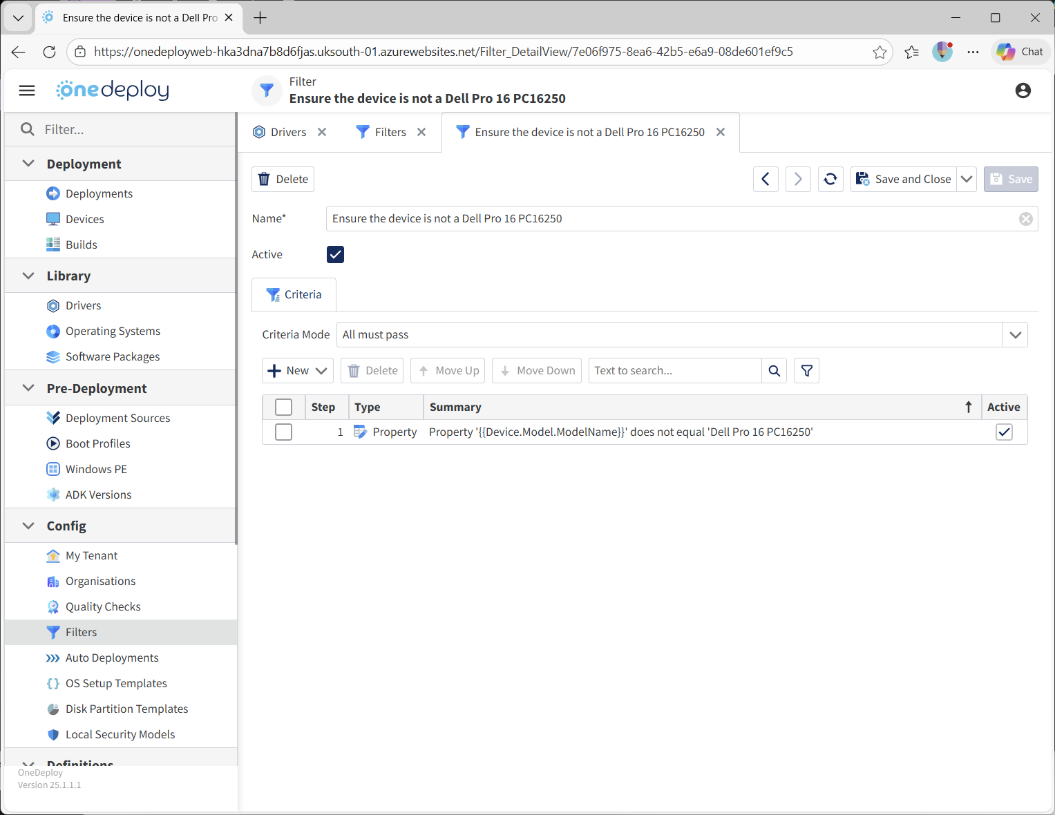 By default, drivers in OneDeploy are available to all compatible hardware. Filters allow you to restrict or exclude this behaviour. See the Examples section below.