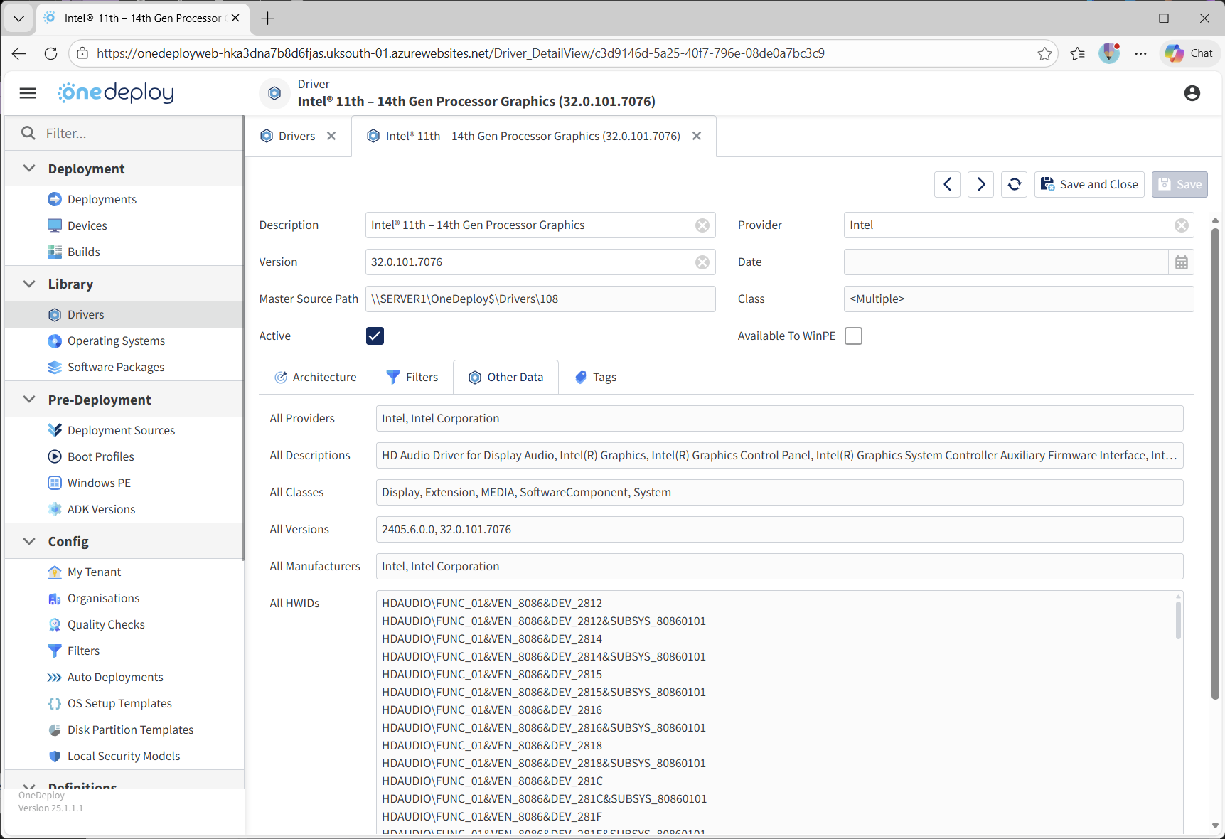 OneDeploy uses this information to ensure a Driver is not injected into an operating system that would reject it due to version or build constraints. Some drivers are broadly applicable across OS versions, while others are highly specific to certain Windows builds and have been written as such by the Driver provider.